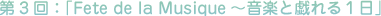 第3回 「Fete de la Musique~音楽と戯れる1日」