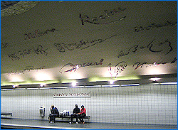 Cluny-La Sorbonne駅。ラシーヌ、パスカル、モリエール等、歴史に名を残した文学者、哲学者、政治家などの署名のモザイクが、天井に飾られている。フランスの小学校や高校の教育現場で共通しているのは、児童や生徒自身の考えを発言させるため、質問が多く投げかけられています。そして発言することで、他人の興味や質問を喚起し、それに対して主張・補足、あるいは反論することで、自分の立場をより明確にしていきます。この繰り返しにより、自分の考えも次第に深まっていきます。決して答えが一つではないので、「自分の考えを作る」という意思が必要になります。