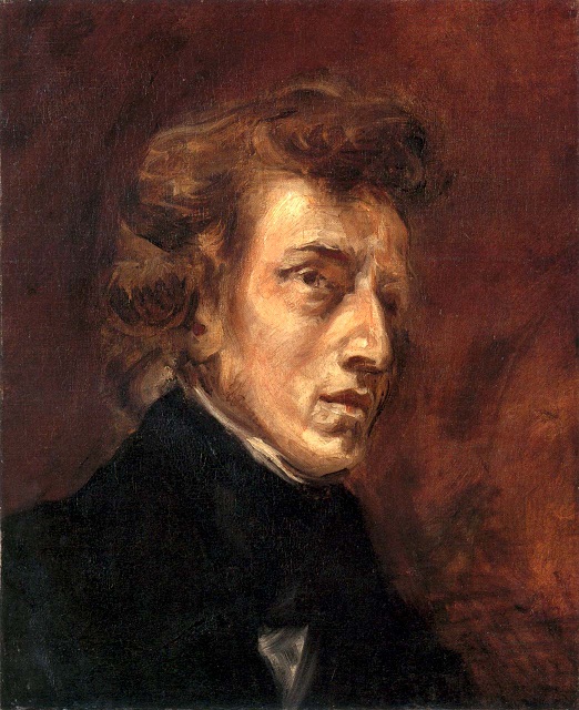 [18] それでも、私は彼の人相をざっと描くことができるくらいショパンをよく知っている。それに、私は目下にドラクロワの描いた素晴らしい肖像画があるのだ※2。これは苦しみに苛まれ、打ちひしがれた晩年のショパンを描いたものだ。既に崇高さの刻印が刻まれた顔つき、天地の狭間を漂う夢想的で陰鬱な眼差し、夢の、そして末期の朦朧とした状態。縦に伸びた面長の顔立ちが非常に際立ち、凹凸ははっきりと目立っている。だがそれでいて顔の輪郭は美しく、楕円形の顔、鷲鼻と調和のとれた鼻の曲線は、この病んだ人相にショパン特有の詩的気品を刻印している。