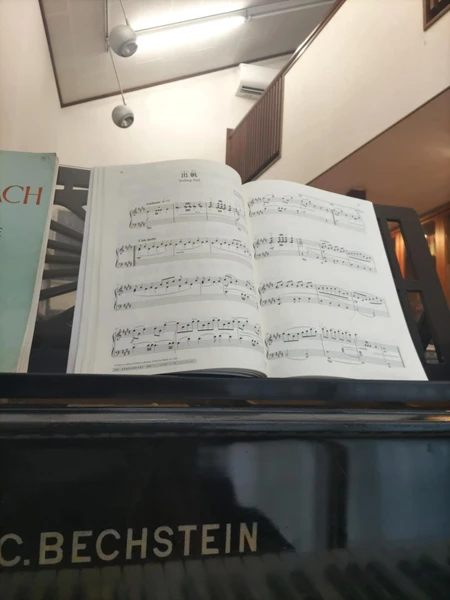 易しい曲に聴こえるかもしれないけど、音楽的に弾くのは難しいよ。特徴はポリフォニー。いろんなパートがあっちこっちで聴こえる。まるで違う楽器のようにね。耳を開くことが大事なんだ。