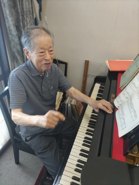 田辺恒弥先生作曲「《窓》29のピアノ小品集」との出会いをきっかけに、私は2025年7月31日、先生のお宅を訪ねる機会を得ました。夏の強い日差しのなか、迎えてくださったのは、田辺先生と奥さま。90歳を迎えられた今もなお、「自分の生き方に結論が出ない」とおっしゃり、模索を続けている田辺先生。私は、お会いするまで、《窓》は子どものための作品ですし、長年大学で教鞭をとってこられた方だから、教育者としてのお立場が強い方かと思っていました。でも、お会いしたのは、そんな予想とは異なる、真の芸術家の姿でした。