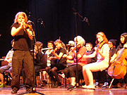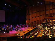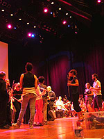 各バンドごとに最終リハーサル。座る位置や出入り、ソロの時のマイクとの位置関係、ボリュームのバランスなどをチェック。週末に来れなかった子も参加し、大きなステージで演奏してみると、さらなるアイディアも生まれ、微調整を重ねる。フィナーレでは週末の倍ほどの200人が所狭しと舞台へ上がる。約半数の人たちがこの日初めて聴いた音楽に参加し、週末にいた子やリーダーまでも、今まで聴いたことのないような迫力の音楽を「今作り上げている」ことを生の舞台で感じている。最後の最後まで何が起こるかわからないので、演奏をしながら真剣にリーダーへ意識を集中させている。驚くべき吸収力だ。よりよいものへ変えることへの恐れを感じさせない。その新鮮さと集中力、ライブ感が、このアンサンブルの最大の魅力だろう。