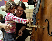 弦はいくつだったかな?幼児が1つのことに興味を持ち集中していられる時間は短い。また幼児がその時期に発達させるエリアは非常に多岐に亘る。従って45分のセッションの間には、子どもたちのテンションを上げたり下げたり、身体を動かしたり座ったり、自分で音を出したり聴いたりと、非常に多くの種類のアクティビティがダイナミックに構成されている。ロンドン交響楽団の一流の演奏者が来たとしても、作品をまるまる聴くことはない。演奏者に求められるのは、その場のアクティビティに適した音楽をピンポイントで、かつ音楽的に満足させる形で提供する能力なのだ。