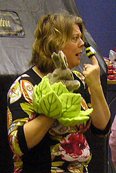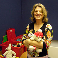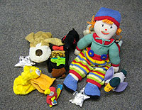 たくさんの人形も音楽づくりに一役買う今度は部屋に隠してあったテディベアを見つけさせ、テディベアの歌を一緒に歌う。「テディを見てごらん、回れるよ。」と歌うと子どももくるくると回る。「高くジャンプできるよ!」とテディベアを放り上げると親は子どもに'高い高い'をする。「お話を語りながらアクティビティをすることで、次々と関連のないことをやっては終わるのではなく、一つ一つの歌や動きの間につながりを感じたり、想像力をかきたてて自分とのつながりを感じたりすることができます。」とヴァネッサは話す。これらの歌は、15年間の経験のうちに集めたり、わらべ歌を替え歌したり、自分で作ったりしたものだ。