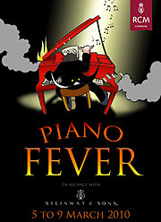 ピアノ・フィーバー!のポスターイギリスを代表する音楽大学の一つ、ロイヤル・カレッジ・オブ・ミュージックを舞台に、鍵盤科をあげてのフェスティバルが開催された。題して「ピアノ・フィーバー!」。5日間に亘って教授陣や学生たちが数々の工夫を凝らしたイベントを企画し、一般に公開した。