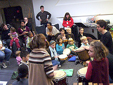 パーカッションワークショップ「Come and Play!(来てみて演奏してみよう!)」と名付けられたこのイベントは、土日2日間に亘って、バービカンセンターとギルドホール音楽院の両会場を広く使ったイベント。バービカン/ギルドホール・クリエイティブ・ラーニングの主催する数々のイベントの中で、全館をあげて音楽に焦点をあてたものだ。