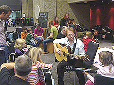 フォーク音楽のワークショップ「Have a go(やってみよう)」では、初心者が楽器にトライできる。その場で楽器を借りても、自分で持ってきてもいい。3歳以上の親子が対象で、ヴァイオリン、チェロ、トランペットなどのクラシック楽器、ギターなどのロック、バンジョーでフォークミュージック、タンバリンやジャンベなどのパーカッション、サックスやクラリネットでのジャズの5か所に分かれ、様々なジャンルの音楽の楽器を試すことができる。午前10時から午後4時まで、グループワークショップが何度か繰り返され、全て無料で予約参加できる。バンジョーのセッションでは、子どもたちはインストラクターと一緒に輪になって座り、楽器の持ち方や鳴らし方を習った。パーカッションは小さい子どもに人気で、クッションの上に座った子どもたちの前に、次々にタンバリンや太鼓類が置かれ、インストラクターの動作にあわせてたたいたり、左右に分かれて違うリズムをたたきあったりした。