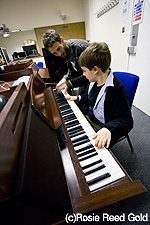 ギルドホール音楽院でピアノを体験日曜日のギルドホール音楽院では、予約制の無料ワークショップが行われた。フォーク、ロック、パーカッション、ピアノ、合唱というジャンルで、8歳以上の若者から大人まで、現在演奏している人から昔演奏したことがある人、いつか弾きたいと思っていた人まで、あらゆるレベルの人を対象として、グループでのワークショップが行われた。単純に楽器を弾くという経験の他に、アンサンブルで他の人と一緒に演奏する楽しみ、楽譜が読めなくても音楽を作って演奏できるという経験など、新しいスキルや楽しみ方の発見のきっかけになった。