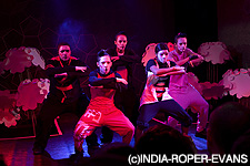 当日のファッションショーも、ただ作製した服をモデルが着て歩くという形ではなく、ダンスと音楽とで作るパフォーマンスの形で披露されるというユニークなスタイル。ダンスは、服をデザインした生徒たちと同年代の13~18歳の若者で構成されたブルー・ボーイズというダンスグループが振付家の指導を受けながら、それらの服を着てパフォーマンスをするためのダンスを作った。