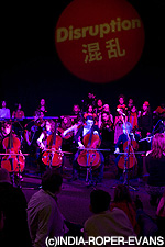 Disruption(混乱)のパフォーマンスもう一つの「Disruption(混乱)」と題されたイベントは、音楽とファッションとをあわせたユニークな試みだ。バービカンのアートギャラリーで2010年10月から2011年2月まで開催された「Future Beauty: 30 Years of Japanese Fashion(未来の美:日本のファッション30年)」に絡めて行われた一連のイベントの一つだ。