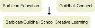 Barbican/Guildhall School Creative Learning was formed by uniting the former, 12-year-old Barbican Education with Guildhall Connect next door. Mr Sean Gregory of the Guildhall School stepped up as Director of Creative Learning, and 17 staff members in the team work on both the Barbican and the Guildhall education programmes.