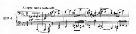 第4番のソナタ(譜例4)は、1908年の習作ソナタを1917年に改作したもので、