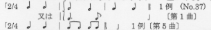 | リズム定型 | 「基本リズムは 〔中略〕変形されることがはるかに多く〔中略〕終止音の´のばし´ 〔第3曲、40番〕 |