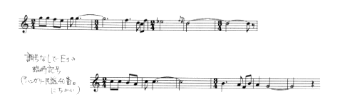 【五音音階】 「古いスタイルの旋律の音階は、次のような半音のない五音音階にもとづいている。」