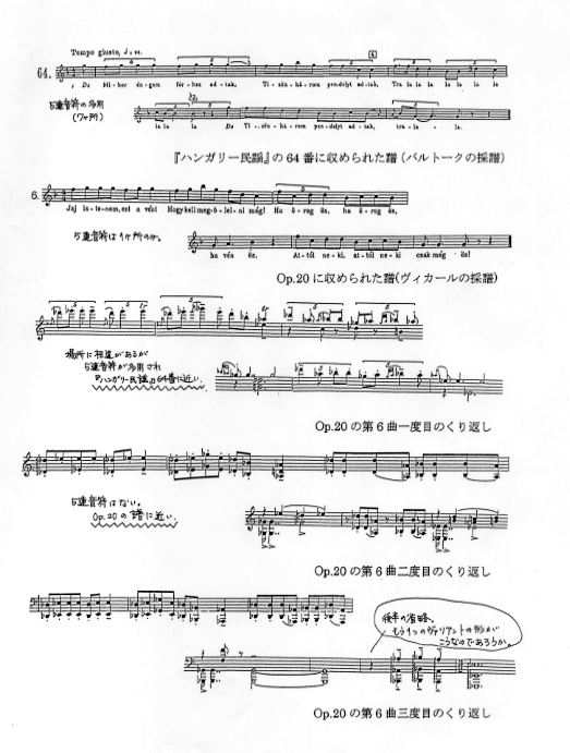 の3種類に分類され、ハンガリー農民音楽の緻密な分析と音楽上の特質が挙げられている。