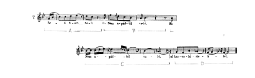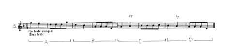 | リズム定型 | 「<7音節は>常にテンポ・ジュストである」「もともとはダンス曲としてのみ使われた可能性がある」 |