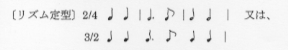 | リズム定型 | 「テンポ・ジュストの曲には以下のようなリズム型がある。〔中略〕」 |
