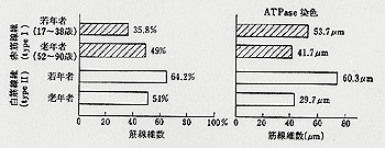 - TypeII(速筋)・・・60歳以上になると細く萎縮してしまうものが多い。