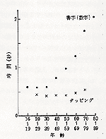 タッピングのように「道具を使っての、単純な反復動作」より、書字のような「自らの指を使っての、ある程度の判断を伴うような動作」の方が、老化に伴う変化が著しい。
