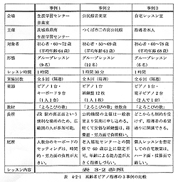 高齢期、彼ら自身の生きる糧となるような質の高いピアノ指導、長寿社会が必要としているような音楽教育の研究が、今後一層望まれる。
