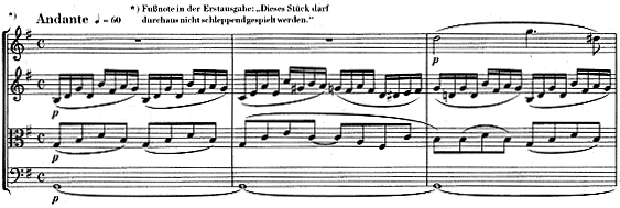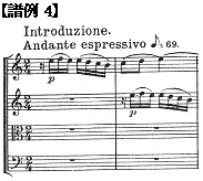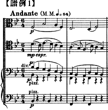 また、シューマンの弦楽四重奏曲Op.41-1 第1楽章【譜例4】にあるAndanteもメトロノーム表示(♪=69)に従えば非常に遅い。