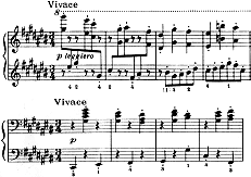 基本的には発想標語であるが、ブラームスは明らかにテンポを示す語としても使用している。≪ハンガリー舞曲集≫にはVivaceの表記が多数あり、テンポを示す例と曲想を表す例の両方が見られる。