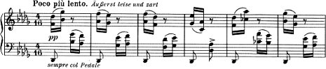 この曲にはメトロノーム数値が付いており、それだけでも遅くないことは伝わるが、更にドイツ語で「あまり引きずらないで演奏すべし」と注意書きが加えられている。