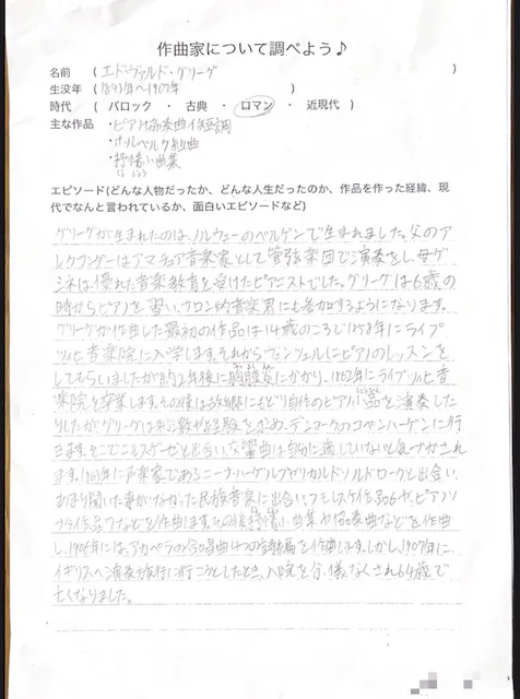 そこでまず、調べる機会を作ることにしました。数年前から「作曲家を調べよう」という課題を始め、調べるだけでなく、発表する所までをワンセットにしています。他の生徒が見られるように発表動画を撮るようにしたら、不思議と手を抜くことがなくなりました。