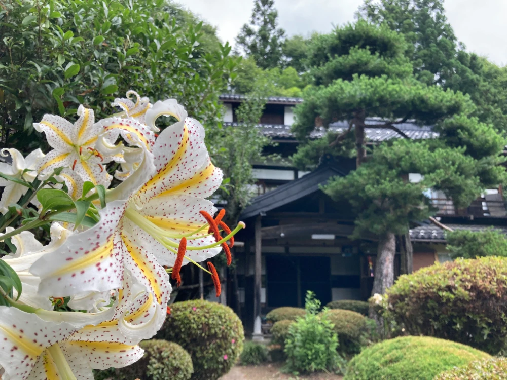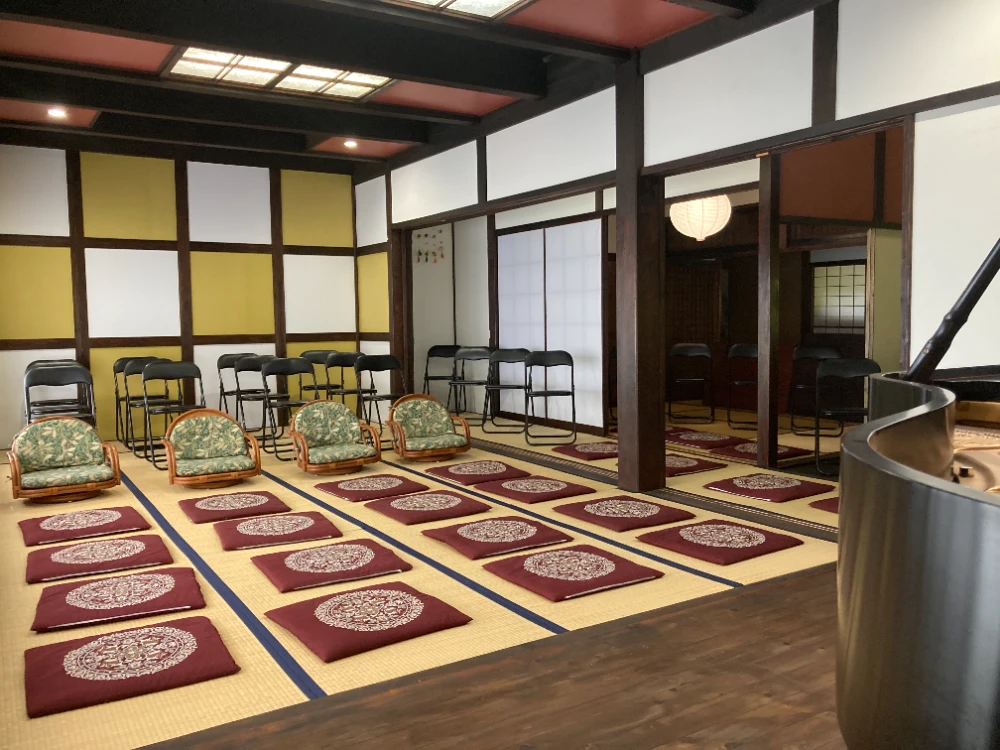 600坪の日本庭園を有する築150年を超える古民家を改築し、自然豊かな静かな場所で、地域の方にも音楽を楽しんでいただけるよう、畳敷きのサロンをつくりました。標高850mの涼しい山の中にあり、外からは鳥のさえずりや水の音が聞こえる「和」の空間で、心穏やかに音楽に浸っていただけます。