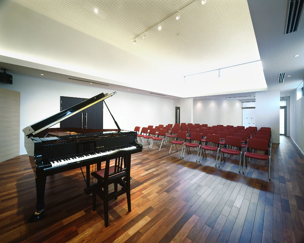「レゾナンス(共鳴、響き)」という名前が表すように、響きがあり、観客と演奏者とが感動を分かち合える空間を作るため、天井を5.2mと高くしています。全ての客席から手元が見えるようプロジェクターを活用しています。これまでの10年間で、コンサート20回、セミナー33回、勉強会56回と合計109回のイベントを開催してきました。